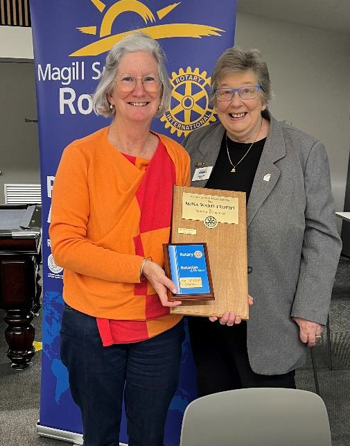Prior to Suzette giving us an update on the Zimbabwe international project it was lovely to be able to present Suzette with her engraved “Rotarian of the Year” award 2024-2025 and the new perpetual “Mina Ward Trophy”. RCMS Bulletin 1293